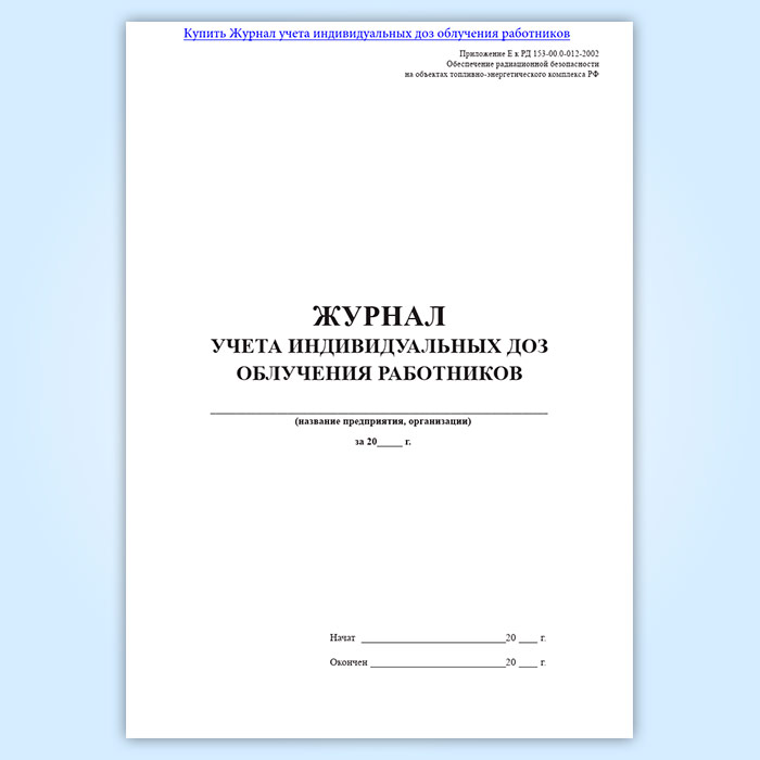 Журнал учета индивидуальных доз облучения работников в Альметьевске купить