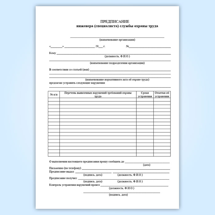 Журнал учета выдачи предписаний инженера (специалиста) службы охраны труда в Альметьевске купить