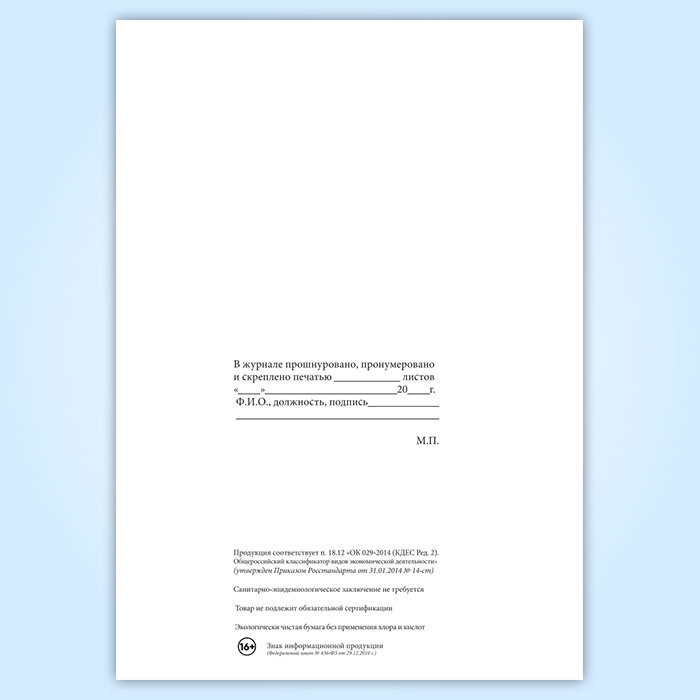 Вы получаете печатную продукцию прошнурованной и c местом для вашей печати в соответствии с действующими нормативными документами: