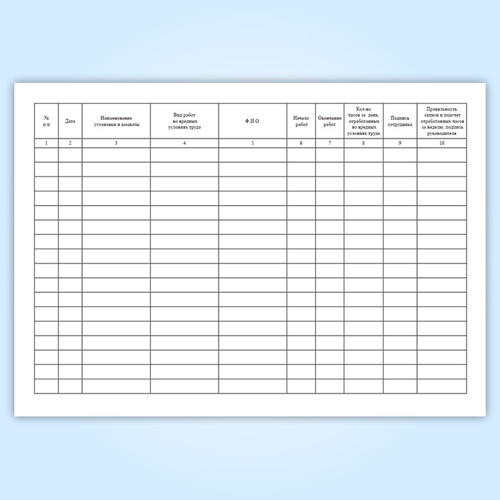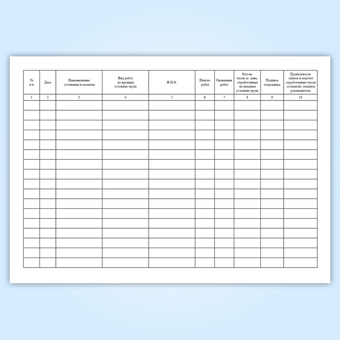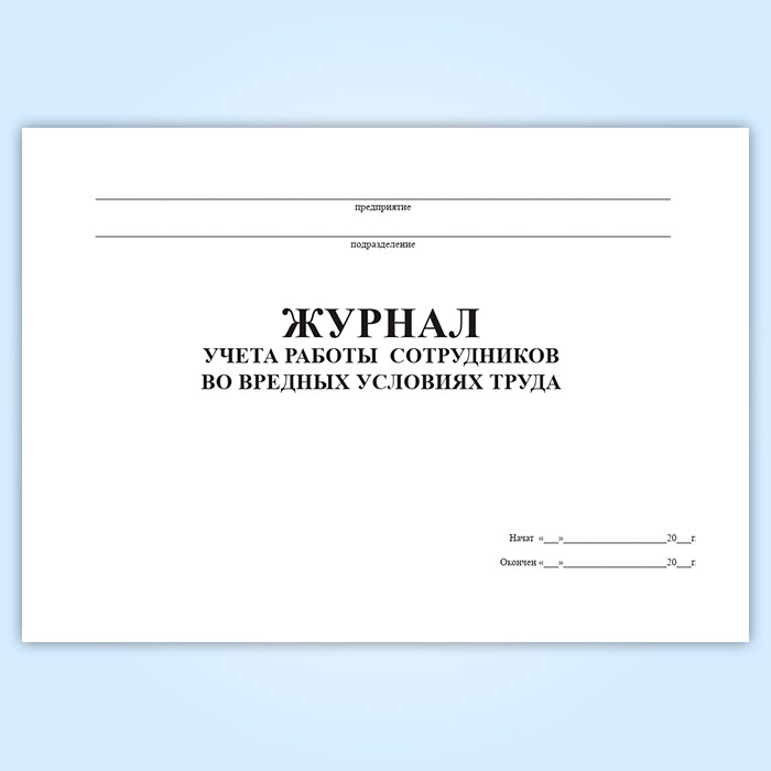 Журнал учета работы сотрудников во вредных условиях труда в Альметьевске купить