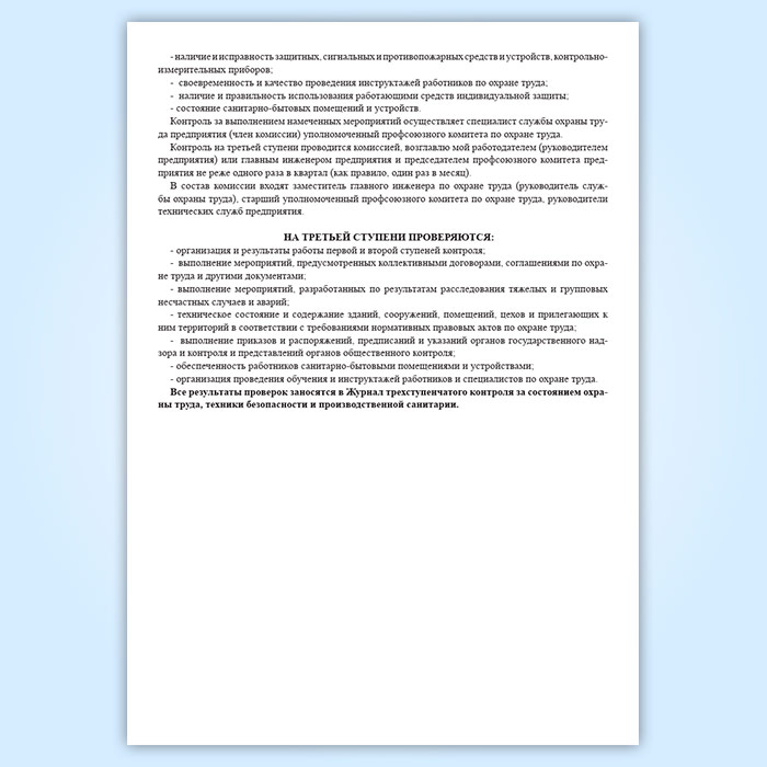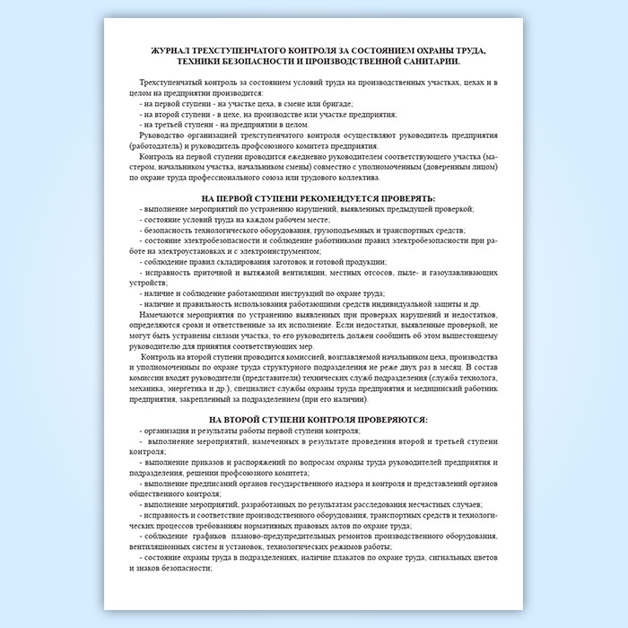 Журнал трехступенчатого контроля за состоянием охраны труда, техники безопасности и производственной санитарии 1 и 2 ступени в Альметьевске купить