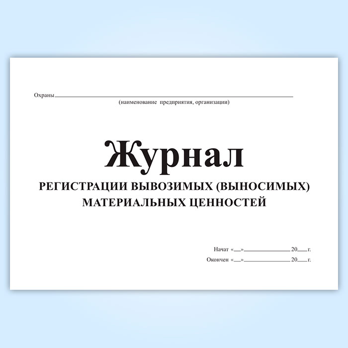 Журнал регистрации вывозимых (выносимых) материальных ценностей в Альметьевске купить