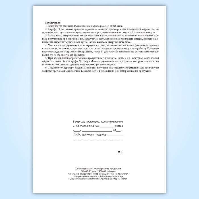 Журнал холодильной обработки мяса и мясопродуктов в камерах охлаждения и замораживания в Альметьевске купить