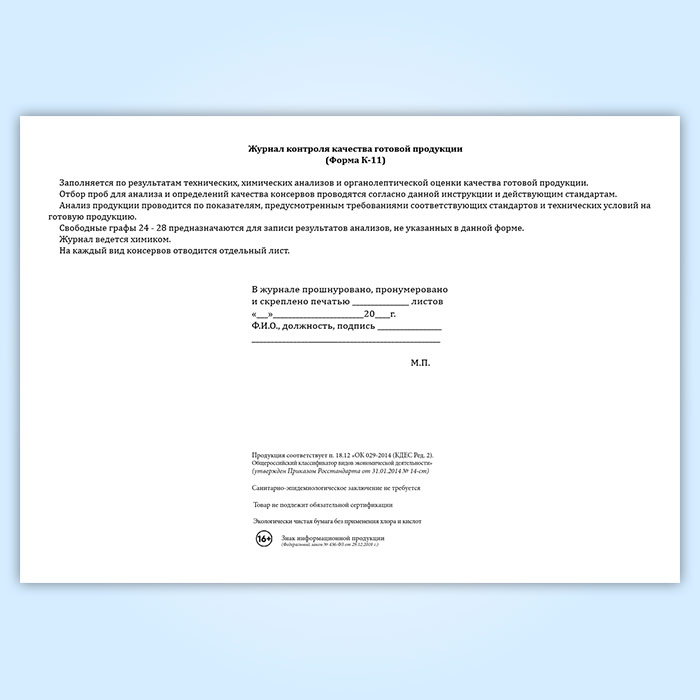 Журнал контроля качества готовой продукции (форма К-11) в Альметьевске купить