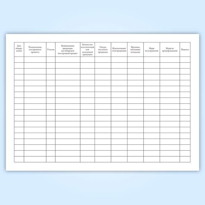 Журнал учета посторонних предметов и включений, обнаруженных в сырье, продукции на производственных участках в Альметьевске купить