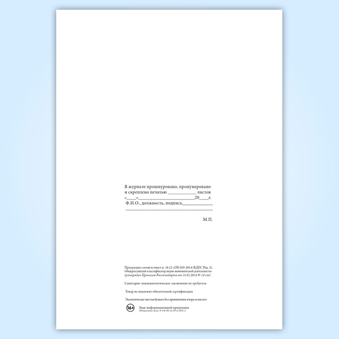 Вы получаете печатную продукцию прошнурованной и c местом для вашей печати в соответствии с действующими нормативными документами: