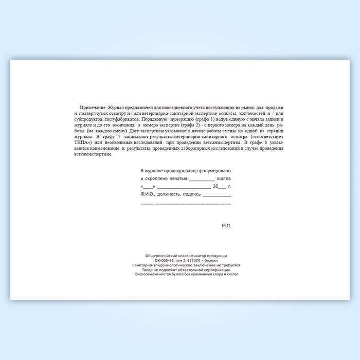 Вы получаете печатную продукцию прошнурованной и c местом для вашей печати в соответствии с действующими нормативными документами: