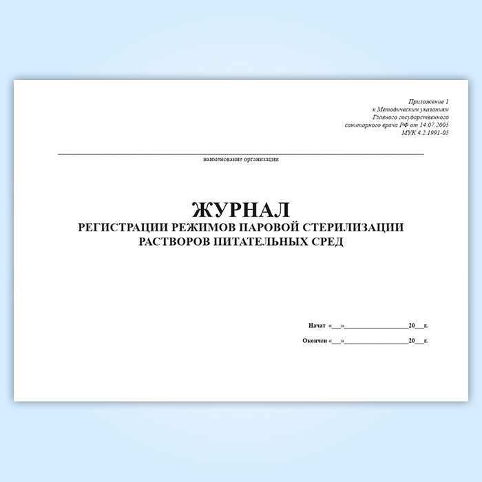 Журнал регистрации режимов паровой стерилизации растворов питательных сред в Альметьевске купить