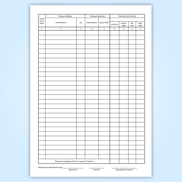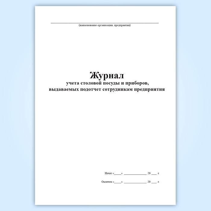Журнал учета столовой посуды и приборов, выдаваемых подотчет сотрудникам предприятия (специализированная форма 16-ОПит) в Альметьевске купить