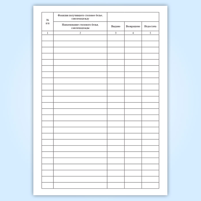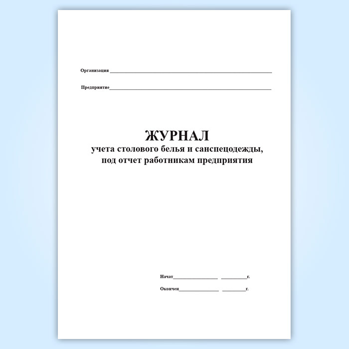 Журнал учета столового белья и санспецодежды, выдаваемой под отчет работникам предприятия в Альметьевске купить