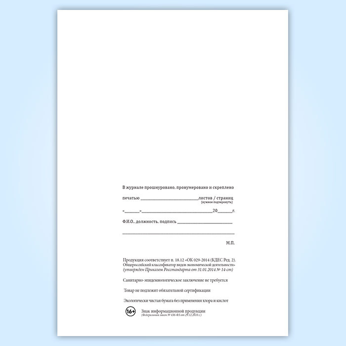 Вы получаете печатную продукцию прошнурованной и c местом для вашей печати в соответствии с действующими нормативными документами: