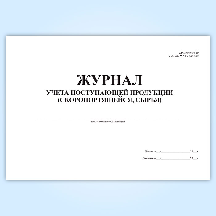 Журнал учета поступающей продукции (скоропортящейся, сырья) в Альметьевске купить