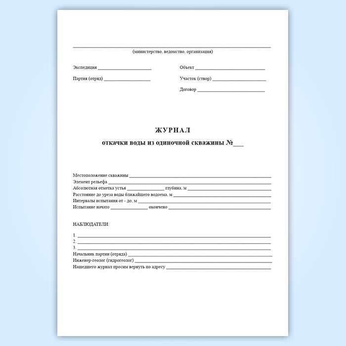 Журнал откачки воды из одиночной скважины (форма УГ-36) в Альметьевске купить