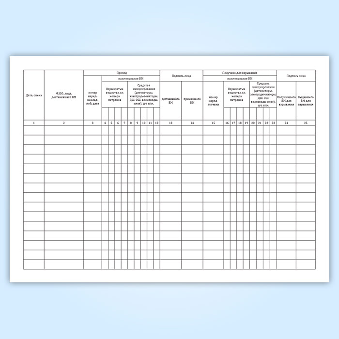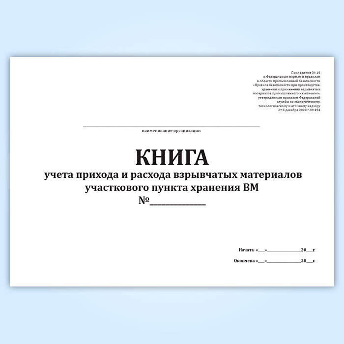 Книга учета прихода и расхода взрывчатых материалов участкового пункта хранения ВМ в Альметьевске купить