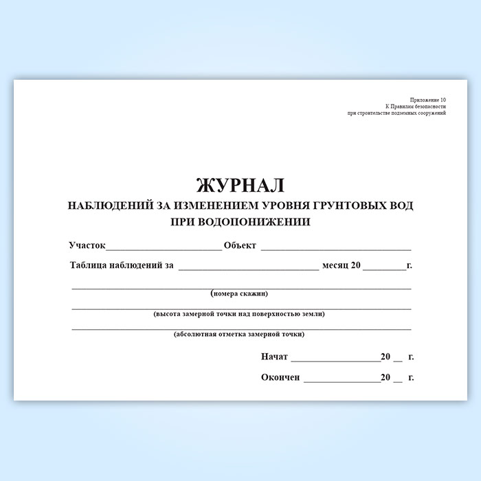 Журнал наблюдений за изменением уровня грунтовых вод при водопонижении в Альметьевске купить