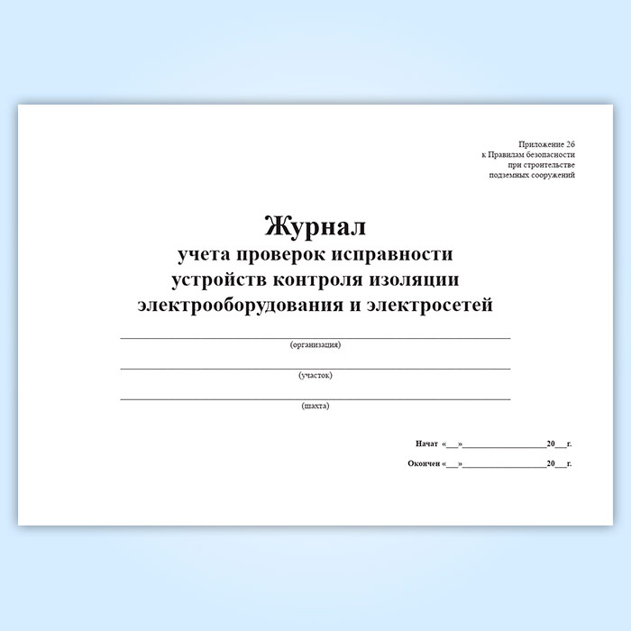 Журнал учета проверок исправности устройств контроля изоляции электрооборудования и электросетей в Альметьевске купить