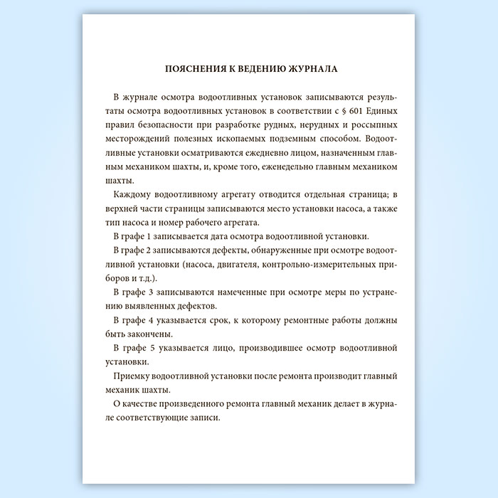 Журнал осмотра водоотливных установок в Альметьевске купить