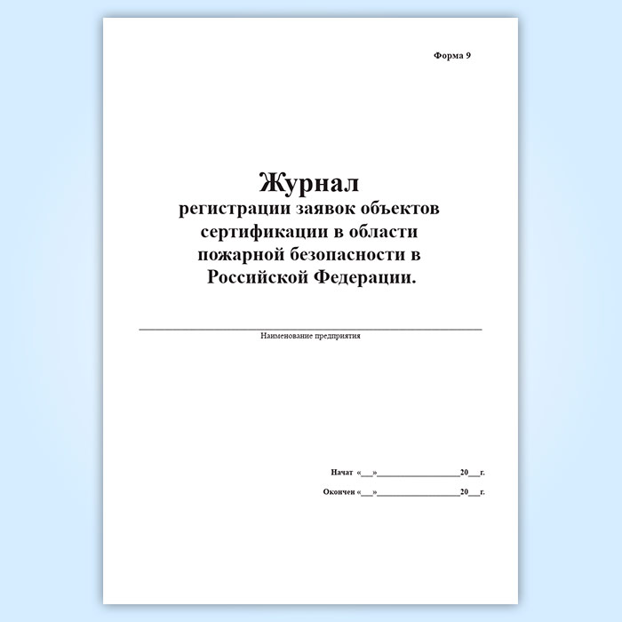 Журнал регистрации заявок объектов сертификации в области пожарной безопасности в Российской Федерации (форма 9) в Альметьевске купить