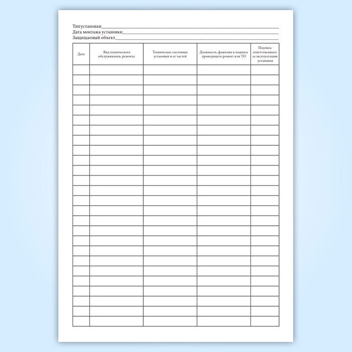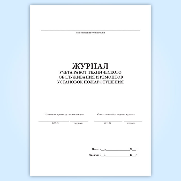 Журнал учета работ технического обслуживания и ремонтов установок пожаротушения в Альметьевске купить