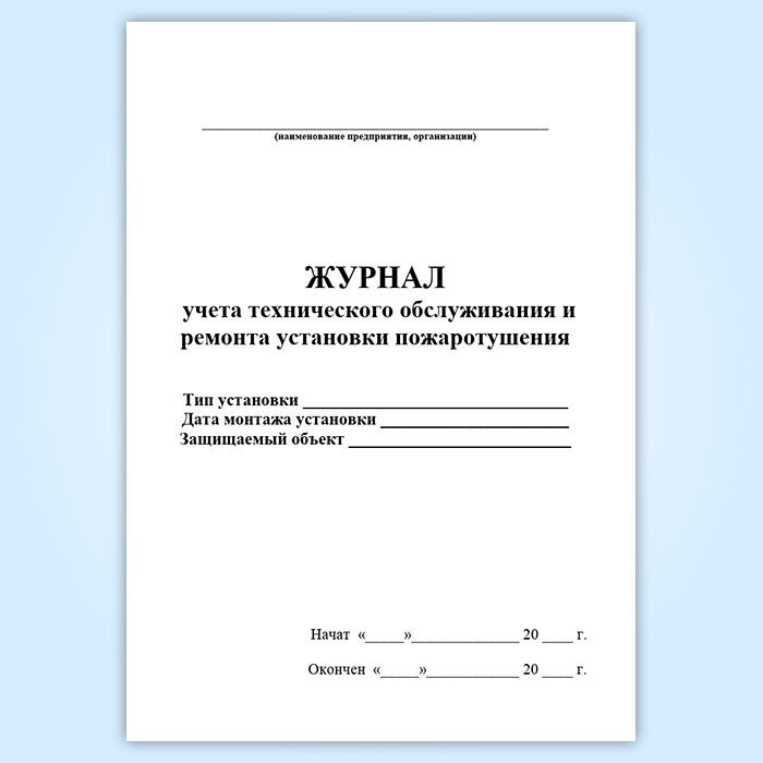 Журнал учета технического обслуживания и ремонта установки пожаротушения в Альметьевске купить