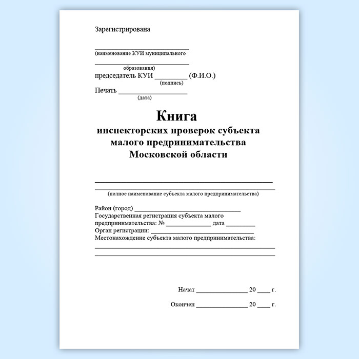 Книга инспекторских проверок субъекта малого предпринимательства Московской области в Альметьевске купить