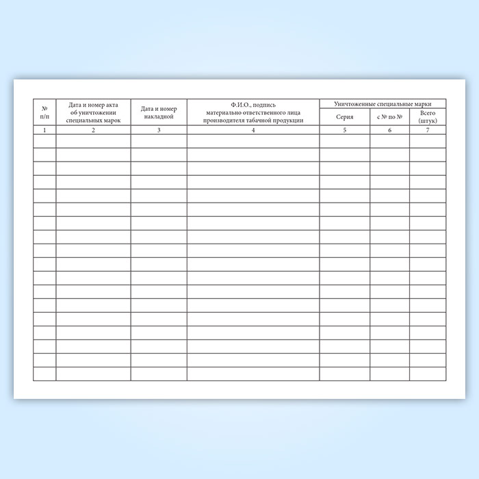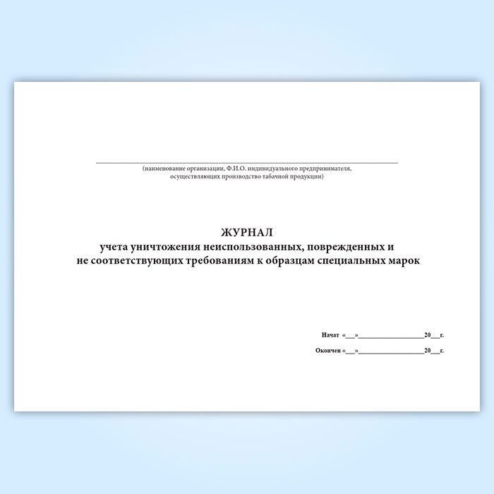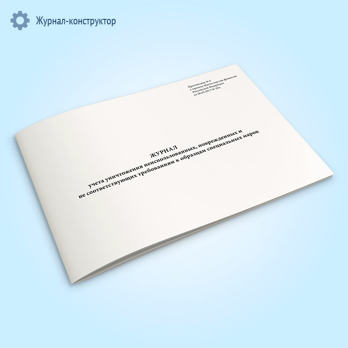Журнал учета уничтожения неиспользованных, поврежденных и не соответствующих требованиям к образцам специальных марок в Альметьевске купить