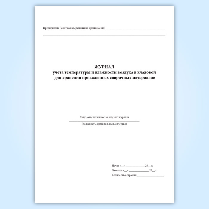 Журнал учета температуры и влажности воздуха в кладовой для хранения прокаленных сварочных материалов в Альметьевске купить