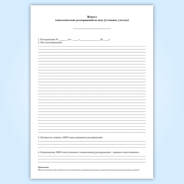 Журнал технологических распоряжений по цеху (установке, участку) в Альметьевске купить