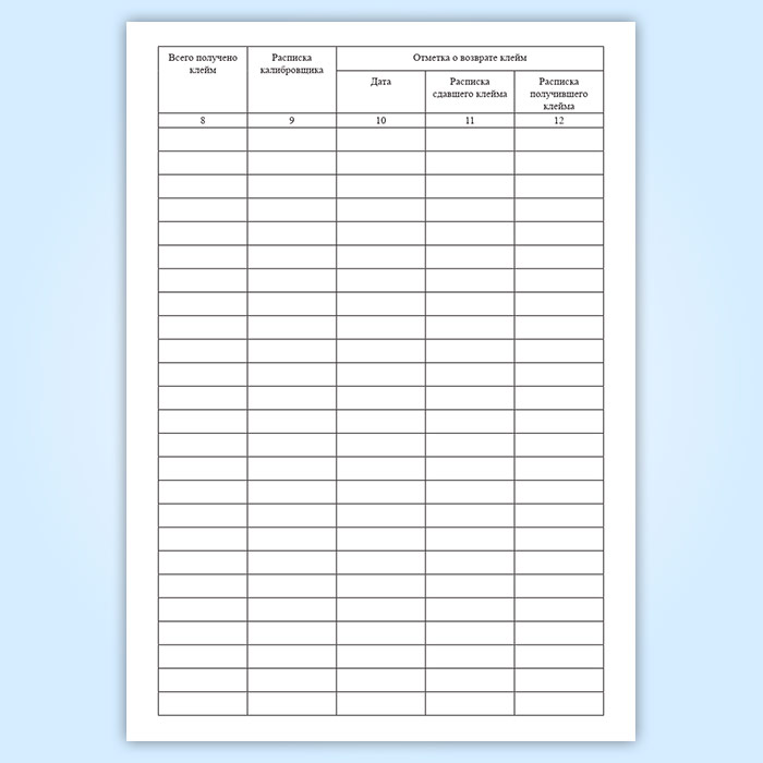 Журнал выдачи и получения калибровочных клейм в Альметьевске купить