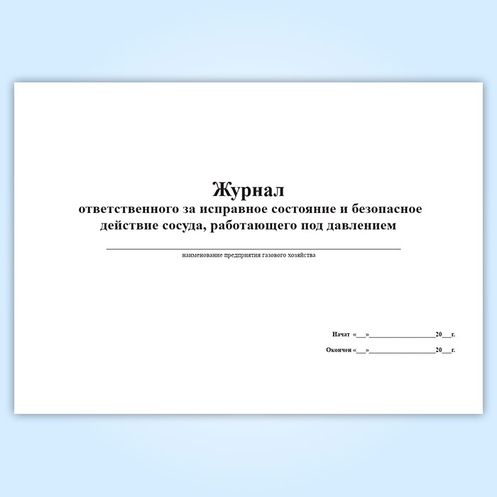 Журнал ответственного за исправное состояние и безопасное действие сосуда, работающего под давлением в Альметьевске купить