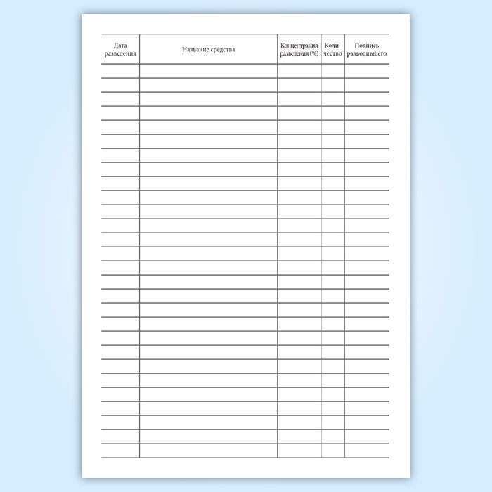 Журнал регистрации разведения моющих и дезинфицирующих средств в Альметьевске купить