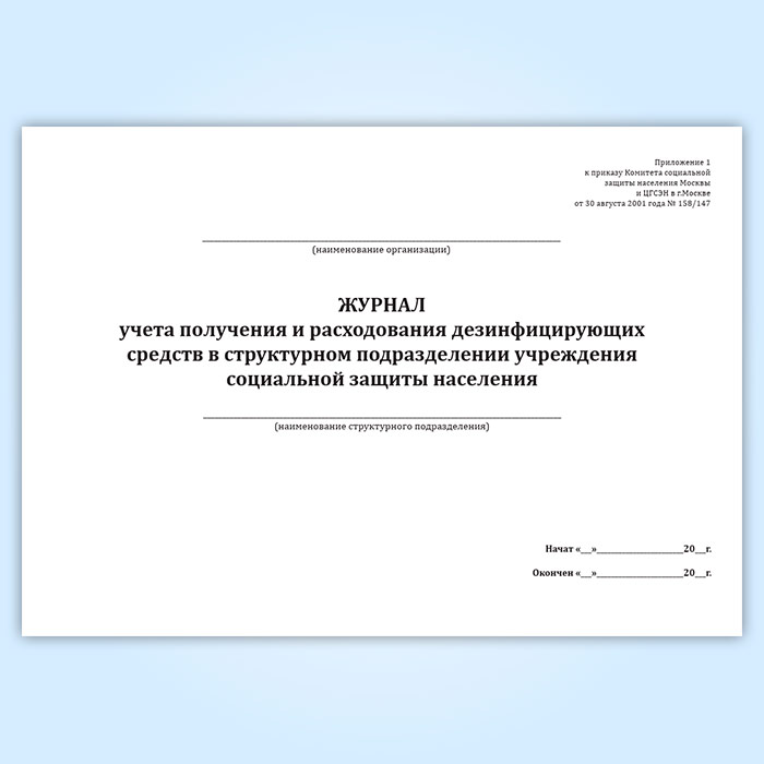 Журнал учета получения и расходования дезинфицирующих средств в структурном подразделении учреждения социальной защиты населения в Альметьевске купить