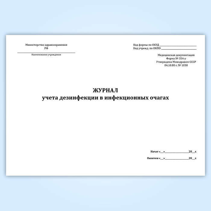 Журнал учета дезинфекции в инфекционных очагах (форма 354/у) в Альметьевске купить