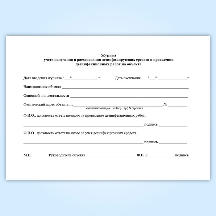 Журнал учета получения и расходования дезинфицирующих средств и проведения дезинфекционных работ на объекте в Альметьевске купить