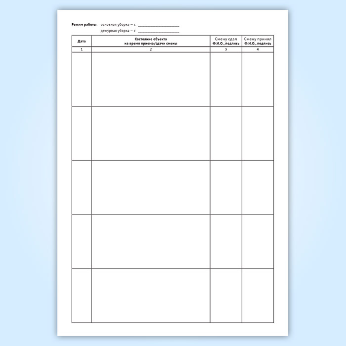 Журнал приема-сдачи смен (для уборки помещения) в Альметьевске купить