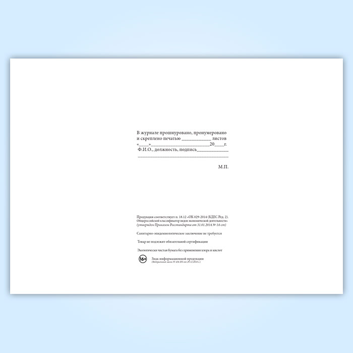 Вы получаете печатную продукцию прошнурованной и c местом для вашей печати в соответствии с действующими нормативными документами: