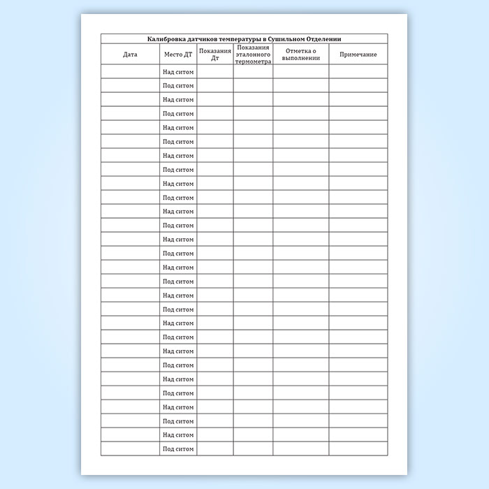 Журнал калибровки датчиков температуры в сушильном отделении в Альметьевске купить