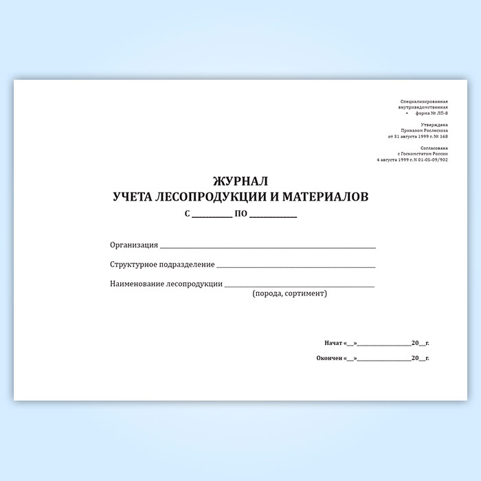 Журнал учета лесопродукции и материалов (форма ЛП-8) в Альметьевске купить