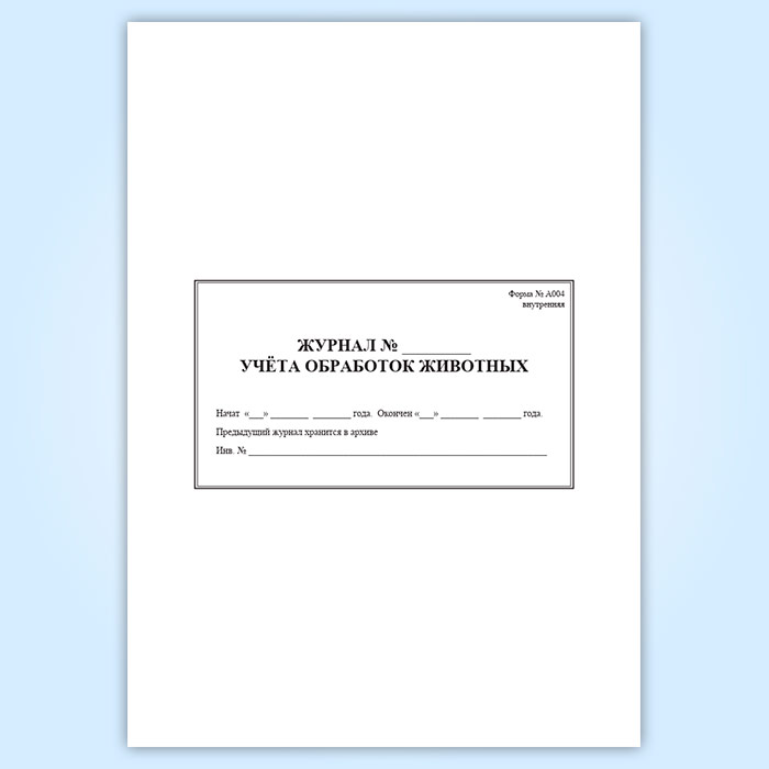 Журнал обработки животных (форма А 004) в Альметьевске купить