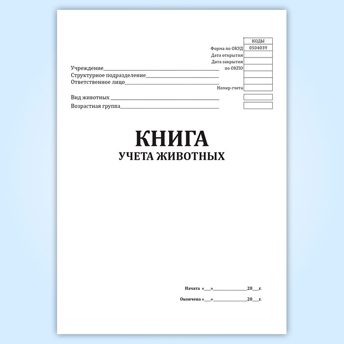 Книга учета животных (форма 0504039) в Альметьевске купить