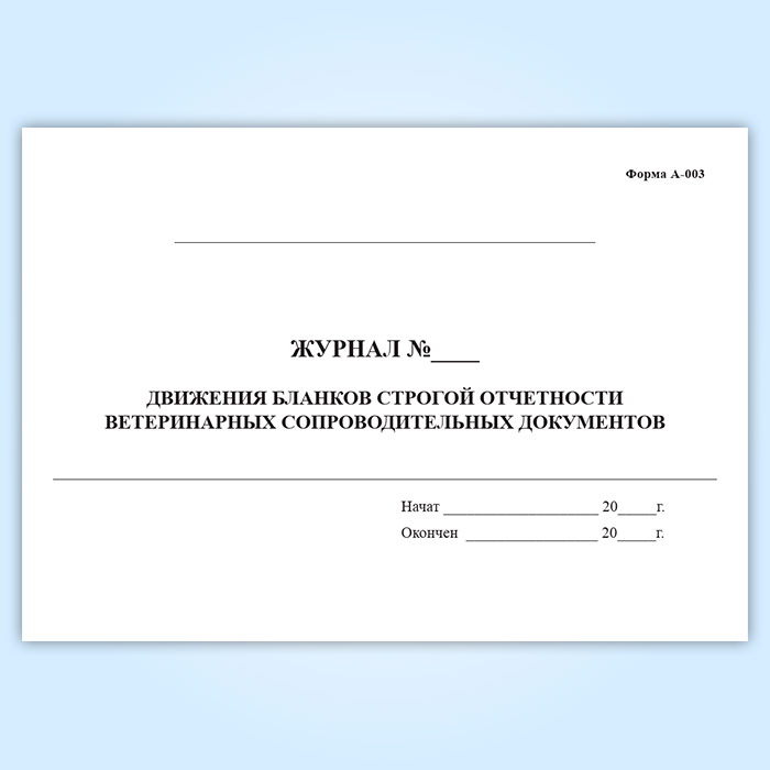 Журнал движения бланков строгой отчетности ветеринарных сопроводительных документов (форма А-003) в Альметьевске купить