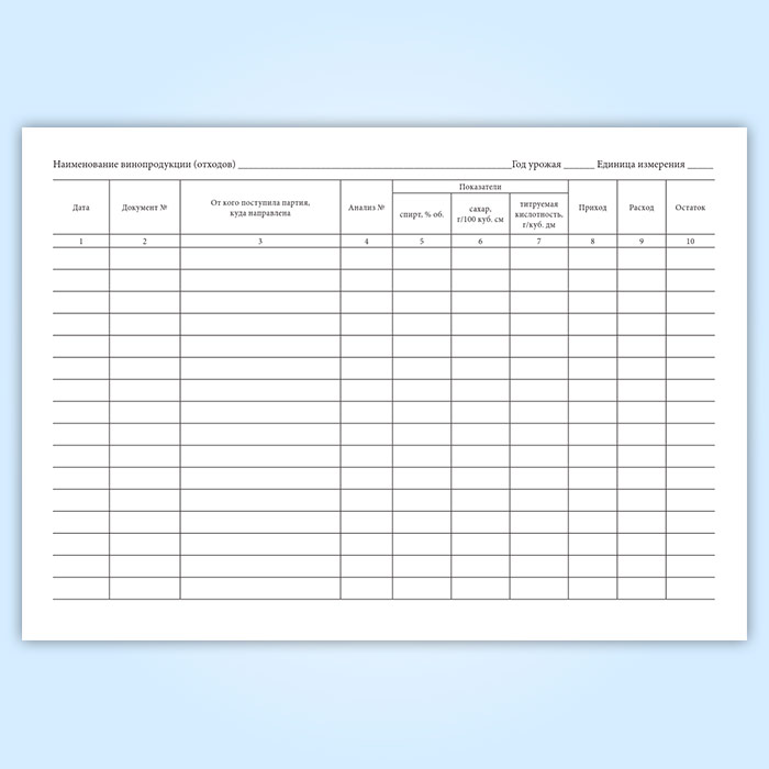 Журнал учета движения винопродукции и отходов виноделия (форма № П-10) в Альметьевске купить
