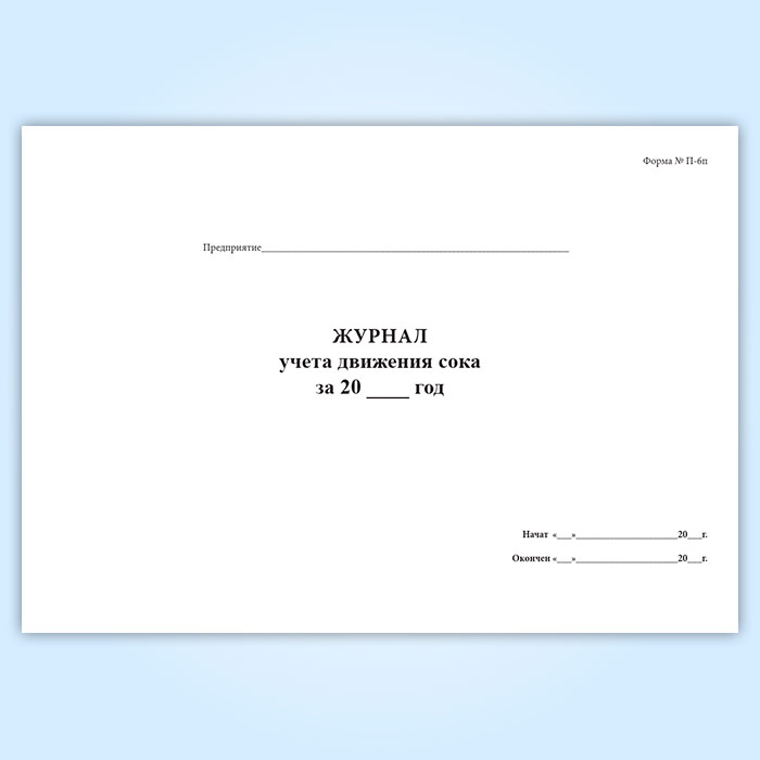 Журнал учета движения сока (форма № П-6п) в Альметьевске купить