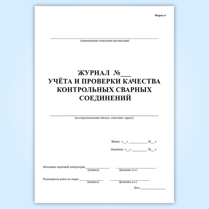 Журнал учета и проверки качества контрольных сварных соединений (форма 4) в Альметьевске купить