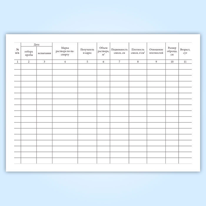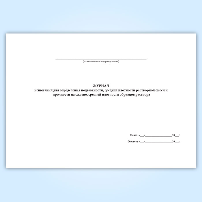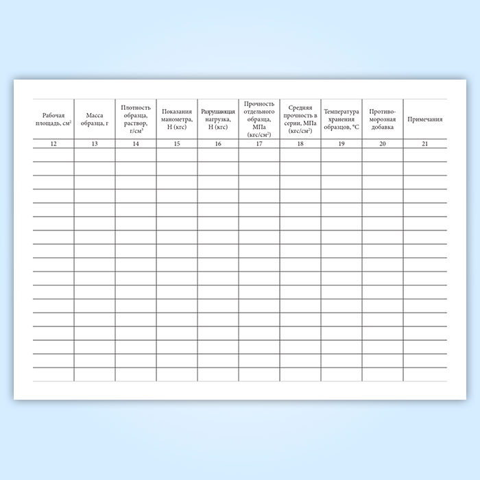 Журнал испытаний для определения подвижности, средней плотности растворной смеси и прочности на сжатие, средней плотности образцов раствора в Альметьевске купить