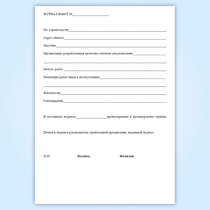 Журнал производства работ по строительству инженерных сооружений в Альметьевске купить