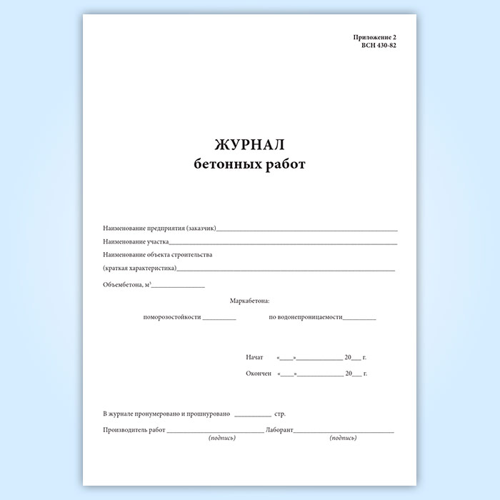 Журнал бетонных работ (ВСН 430-82) в Альметьевске купить