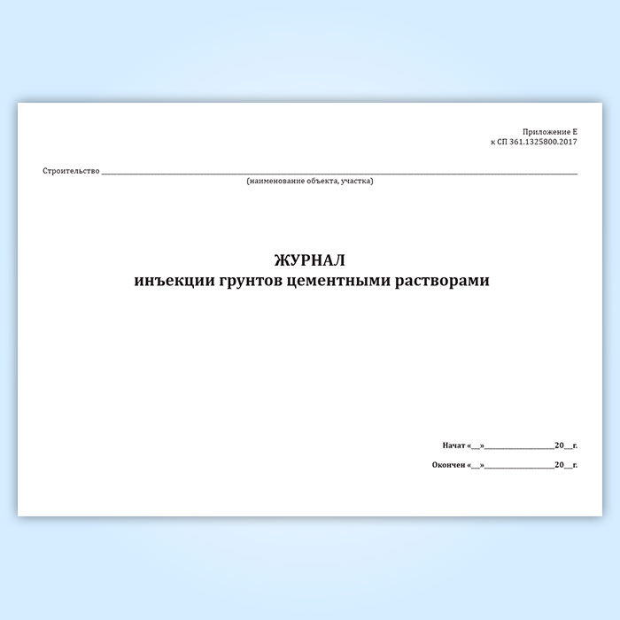 Журнал инъекции грунтов цементными растворами (СП 361.1325800.2017) в Альметьевске купить