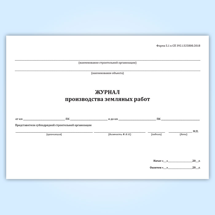 Журнал производства земляных работ (форма 5.1) в Альметьевске купить