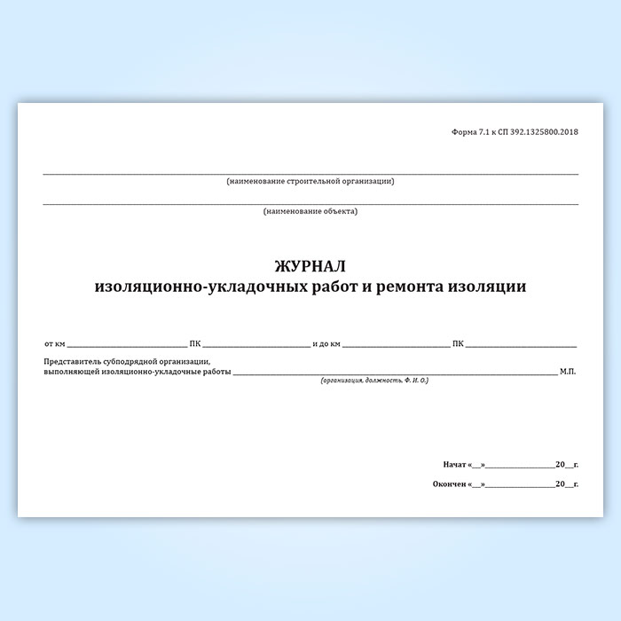 Журнал изоляционно-укладочных работ и ремонта изоляции (форма 7.1) в Альметьевске купить